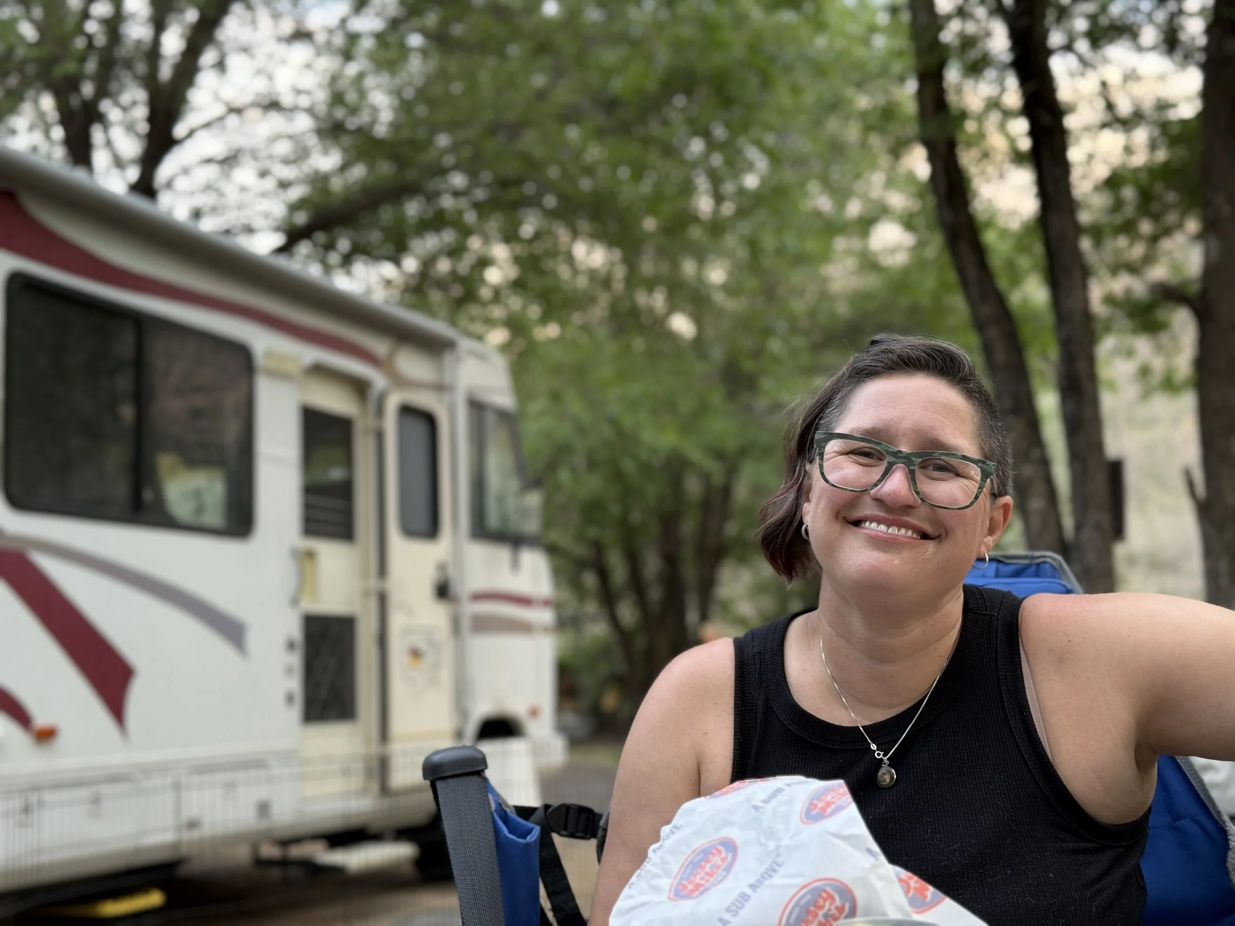 Camping in Colorado has to be booked six months to the day to get a good site. Welp…that didn’t happen. 😅 But no worries—we found a small, privately owned campground in Bellvue, Colorado. Except, “no worries” turned out to mean “right on a busy road with tightly packed RV sites and minimal views.”