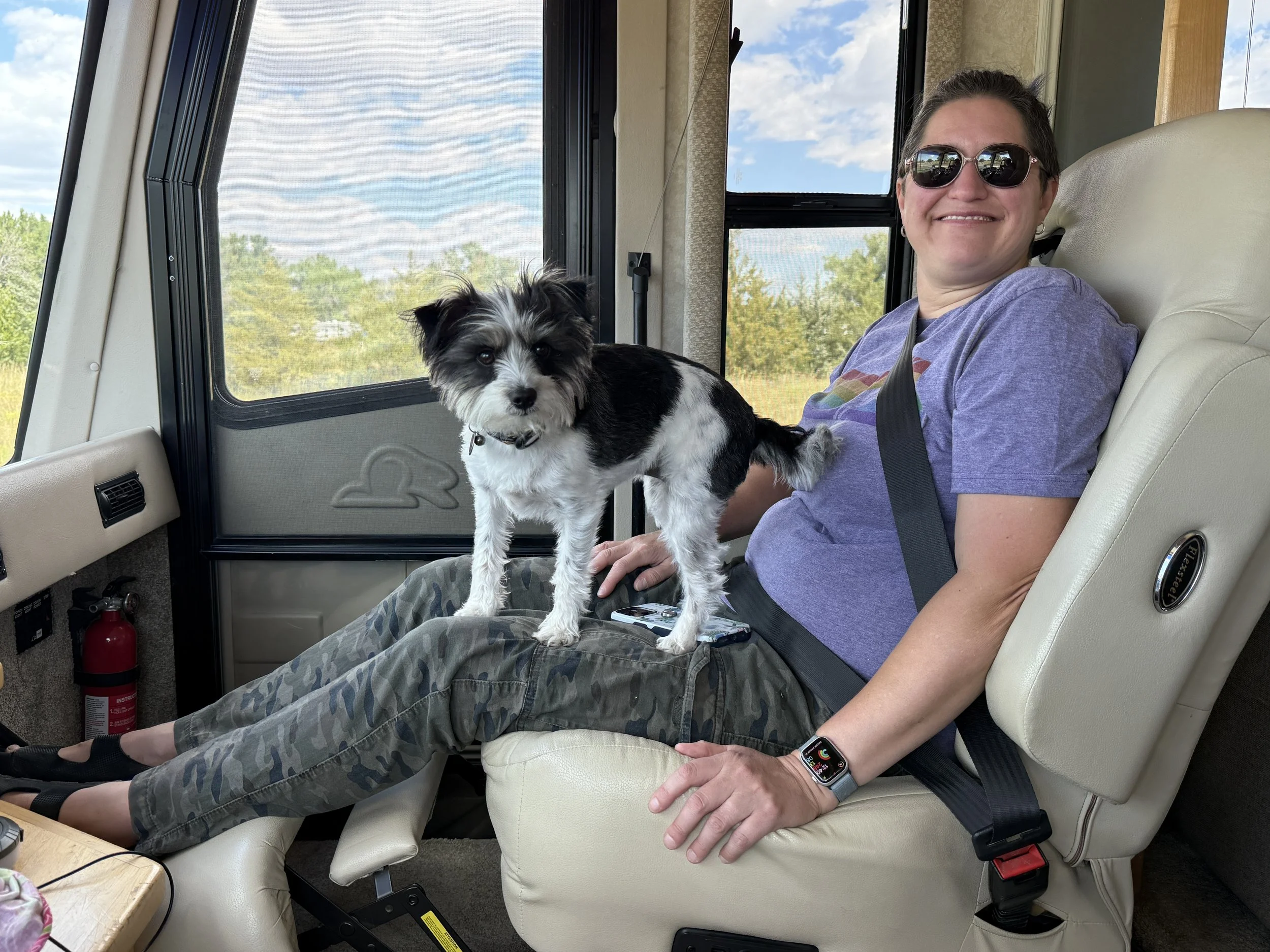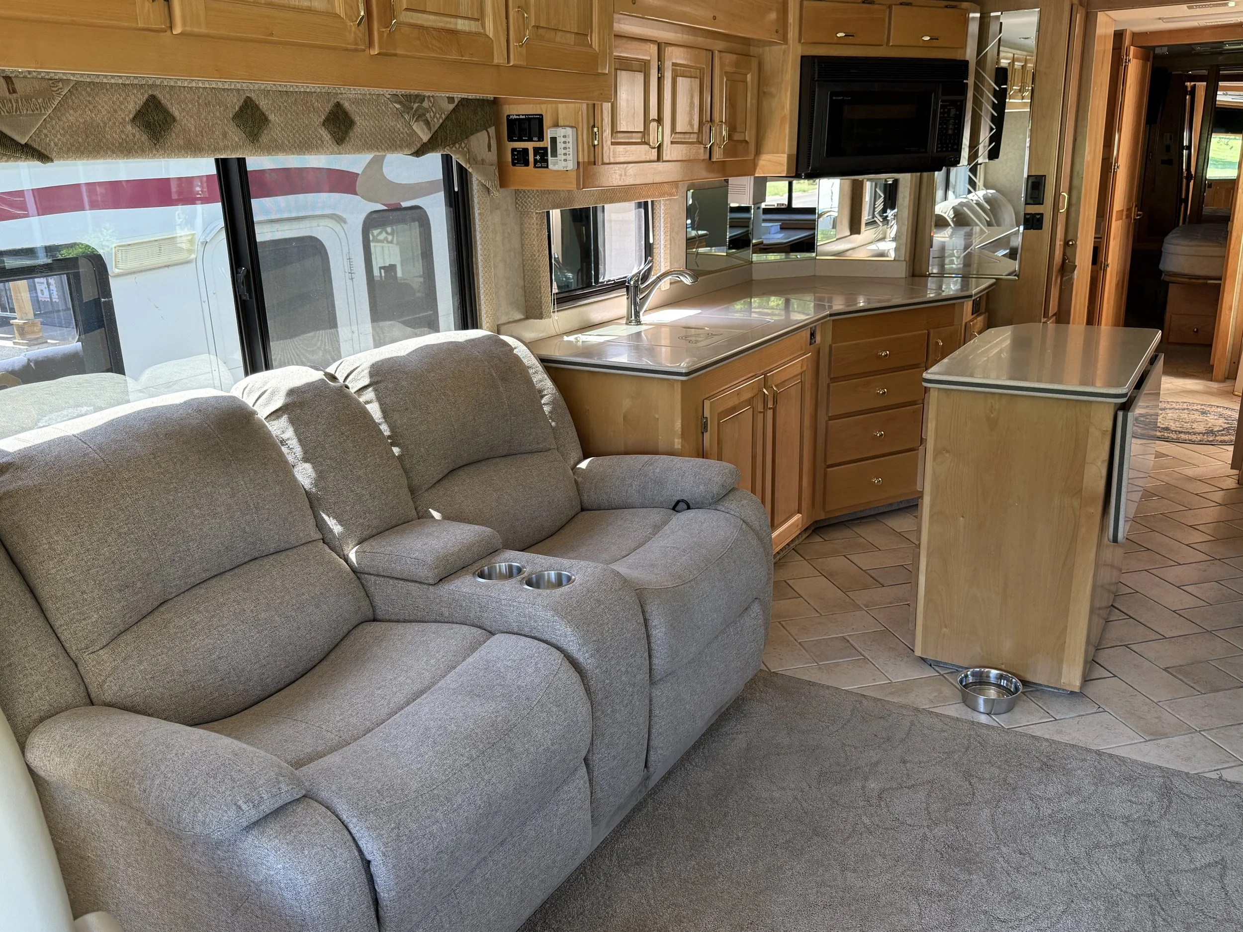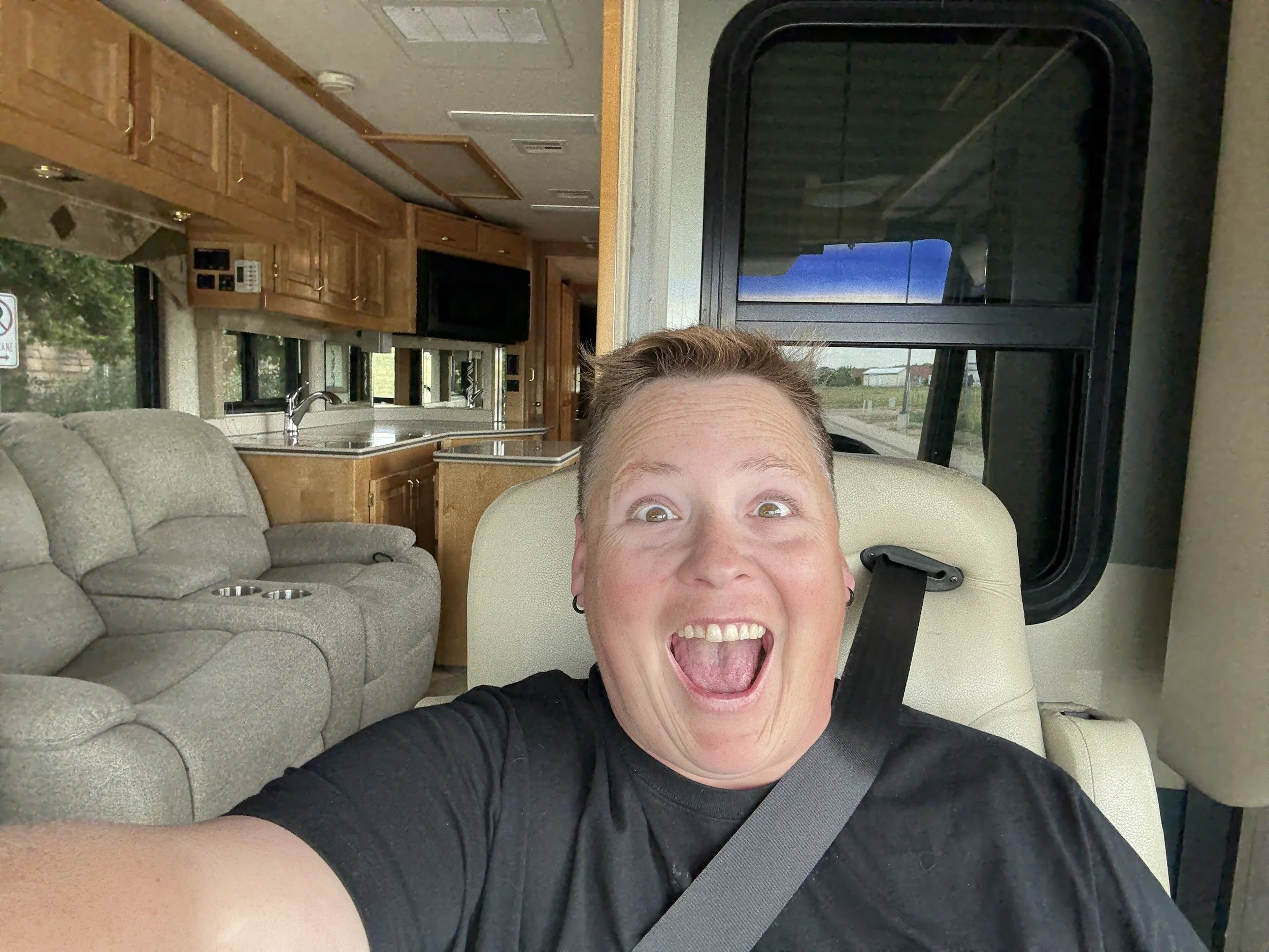 The first test drive was a 35-foot gas RV. It drove beautifully but was still a bit noisy. Then, while I was away on a solo trip, Krissy checked out a 40-foot diesel pusher. She couldn’t drive it that day, but she fell in love with it instantly. The deal was sealed when she saw the brand was a Beaver and named it The Beaver.