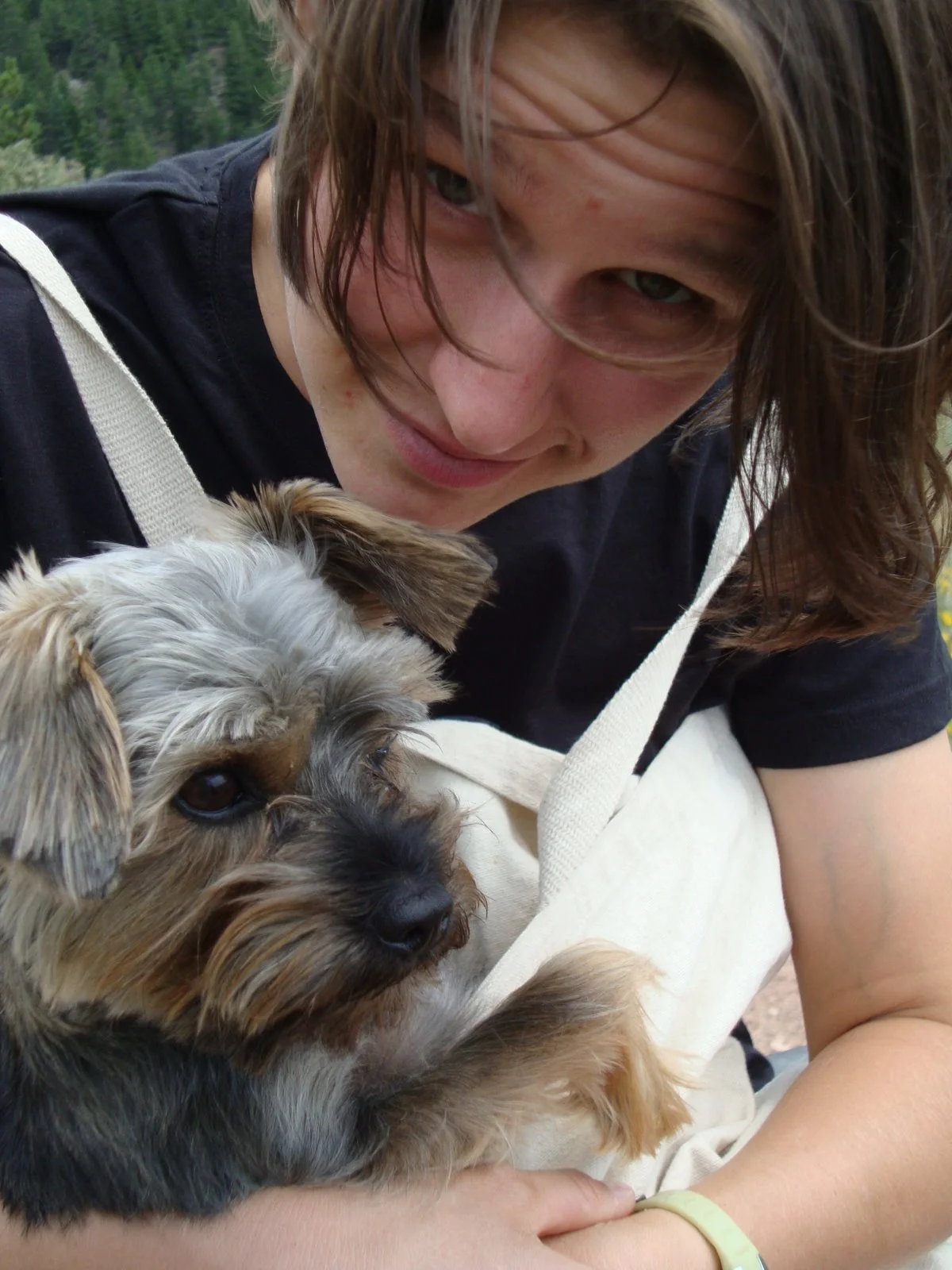 Greta is a tiny mutt with a whole lot of Chihuahua in her (thanks, DNA test). She’s the boss of all the dogs and refuses to be separated from Douglas for more than an hour. She’s trained to a solid D-level—because D’s still get puppy diplomas, right? She has separation anxiety from Douglas, and loves to feed off his stress in the car and RV. It's a whole symphony of chaos.
